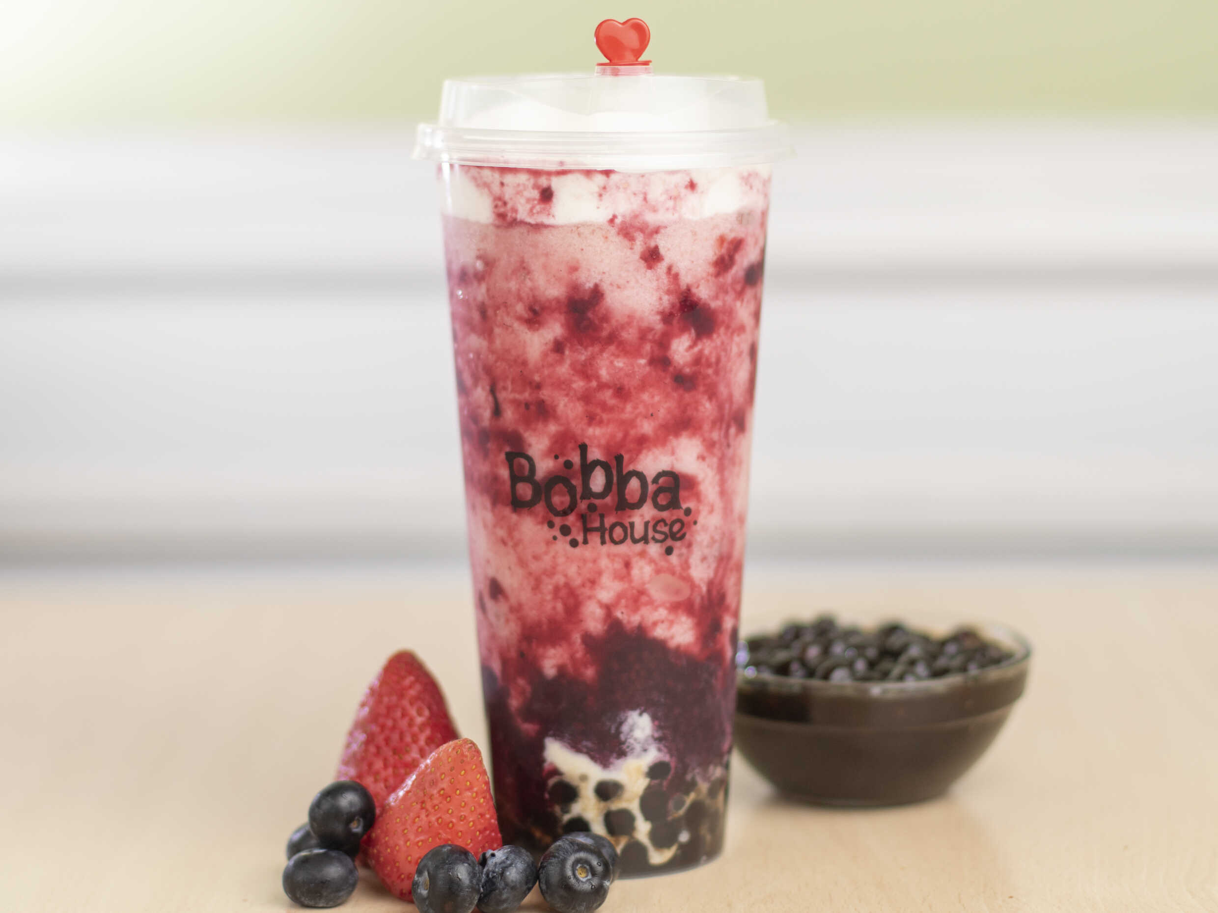 Soda sabor a fresa con popping boba