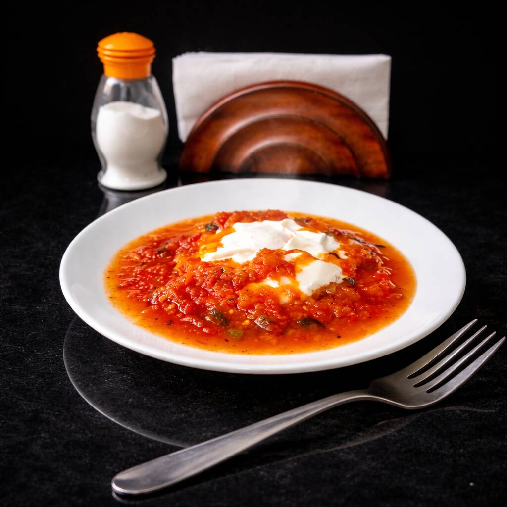 Huevo frito bañado en salsa ranchera (picante 🌶).