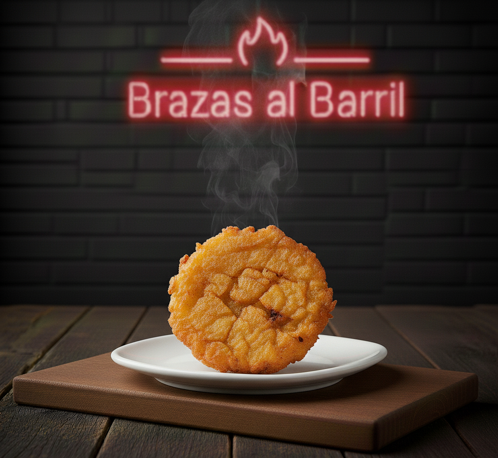 Deliciosos patacones grandes acompañados de frijol molido, lechuga fresca, 100 gramos de chicharrón, pico de gallo, cebolla morada y salsas a las brasas.