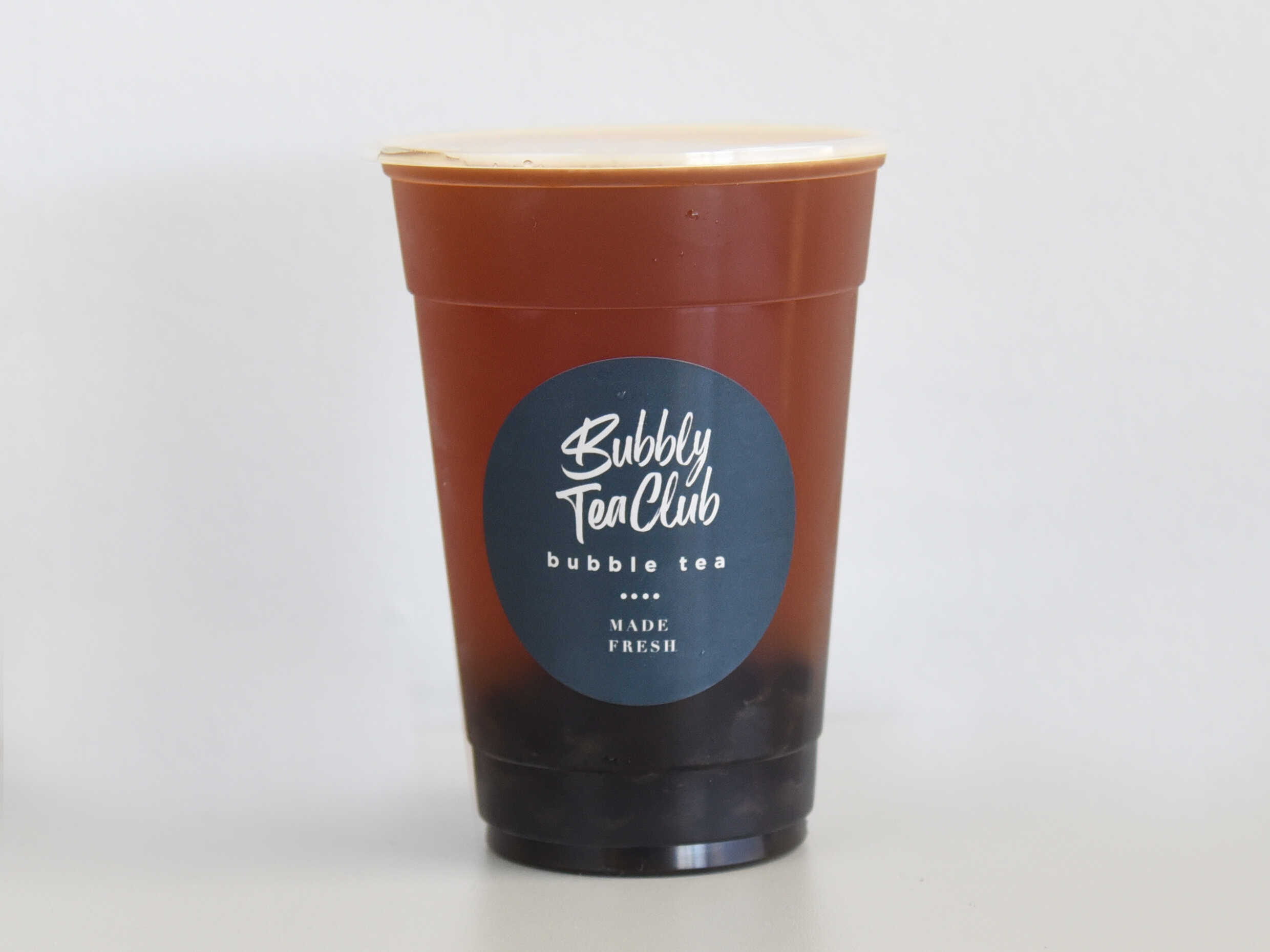 Té negro, con leche vegana y brown sugar. Imagen con fines ilustrativos, la presentación cambia con el proceso de transporte.