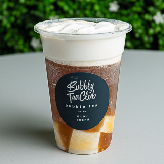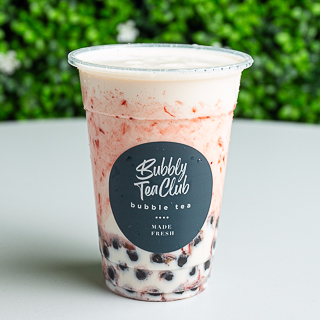 Delicioso Bubbly Tea con sabor a fresa, con popping de fresa y crema de queso
