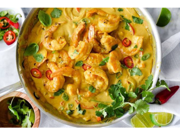 Camarones Coco Curry con arroz GRATIS
