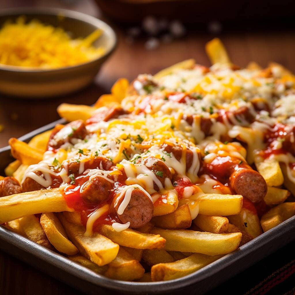 Papas, salchicha humada premium, salsa tomate + carne mechada de la casa ,mayonesa + salsa casera.