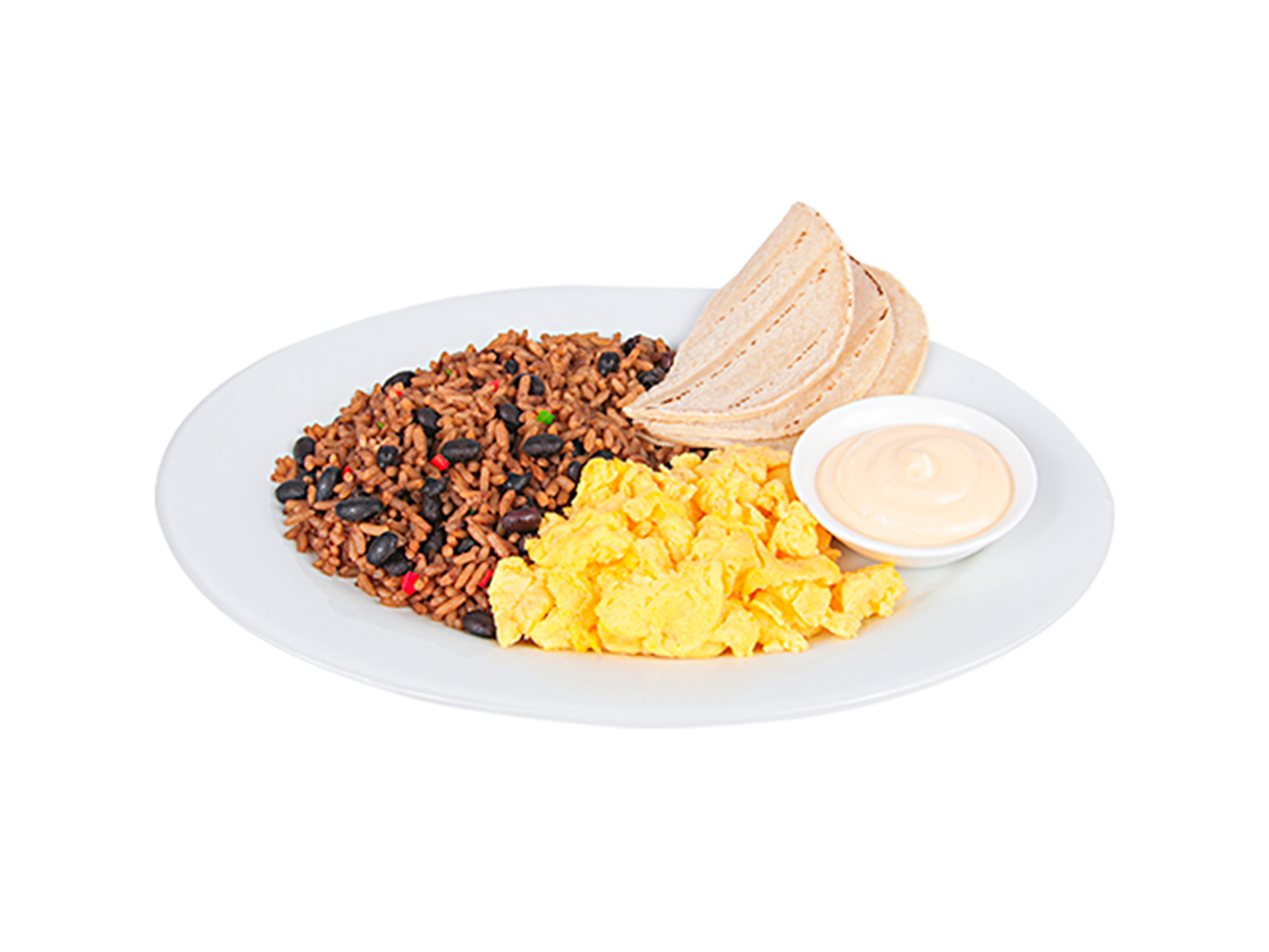 Desayuno a lo tico y a tu manera, acompañado de natilla y tortillas.
