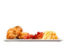 Una forma diferente de iniciar la mañana. Huevo revuelto y opción de tocino con un pan de croissant.