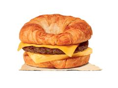 Nuestro exclusivo Croissanwich con huevo, queso americano y salchicha a la parrilla en un esponjoso pan de croissant.