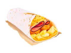 Suave tortilla de harina rellena con huevo, queso y jamón. No hay mejor forma de empezar el dia!.