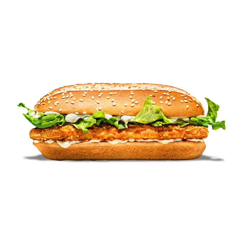 Nuestro King de Pollo® se prepara con una torta alargada, empanizada y con un toque de especias. La lechuga fresca y una capa de cremosa mayonesa en nuestro pan con ajonjolí completan esta deliciosa combinación.