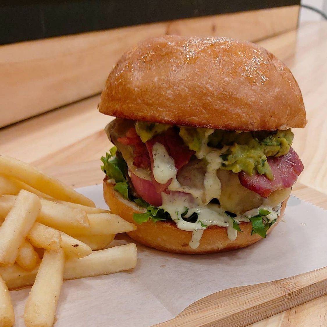 Pan brioche, pura carne Angus, queso pepper jack, deliciosa tocineta, guacamole y nuestro exquisito aderezo poblano.