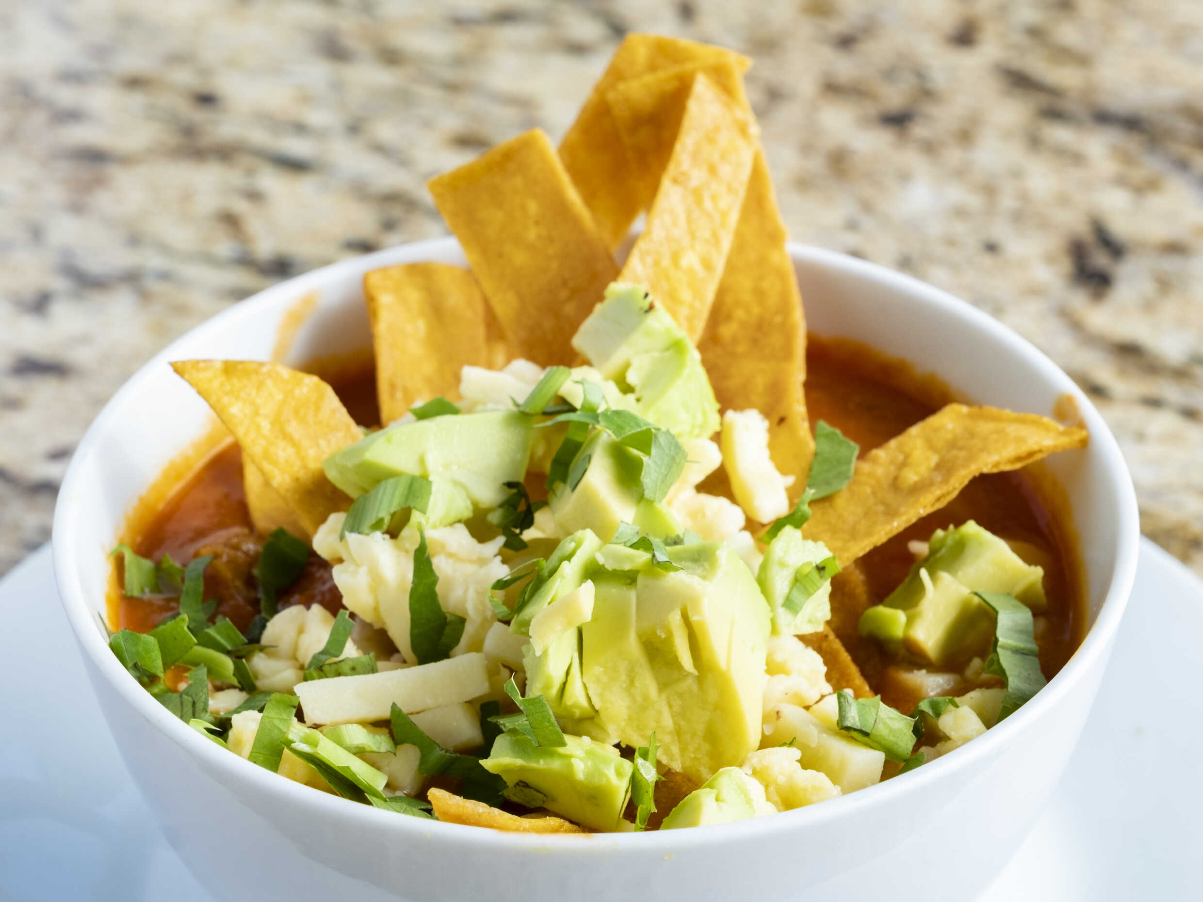 Receta original acompañado con tortilla de maiz, aguacate y mezcla de quesos.