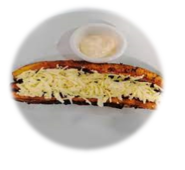 Plátano maduro frito con queso y acompañado de natilla casera.