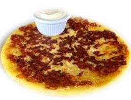 Tortilla de harina de maíz y queso acompañado natilla casera.