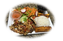 Acompañado de arroz( 200 gramos ), frijoles ( 200 gramos ), ensalada según disponibilidad , acompañamiento del día (picadillo o platano maduro segun disponibilidad), bebida natural de 8 oz. Plato personal