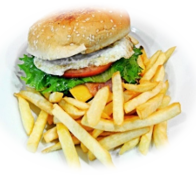Torta de res, huevo frito, tocineta, jamón, lechuga, tomate, aderezo de la casa y papas a la francesa.