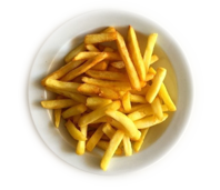 Papas a la francesa acompañado de mayonesa y salsa de tomate.
