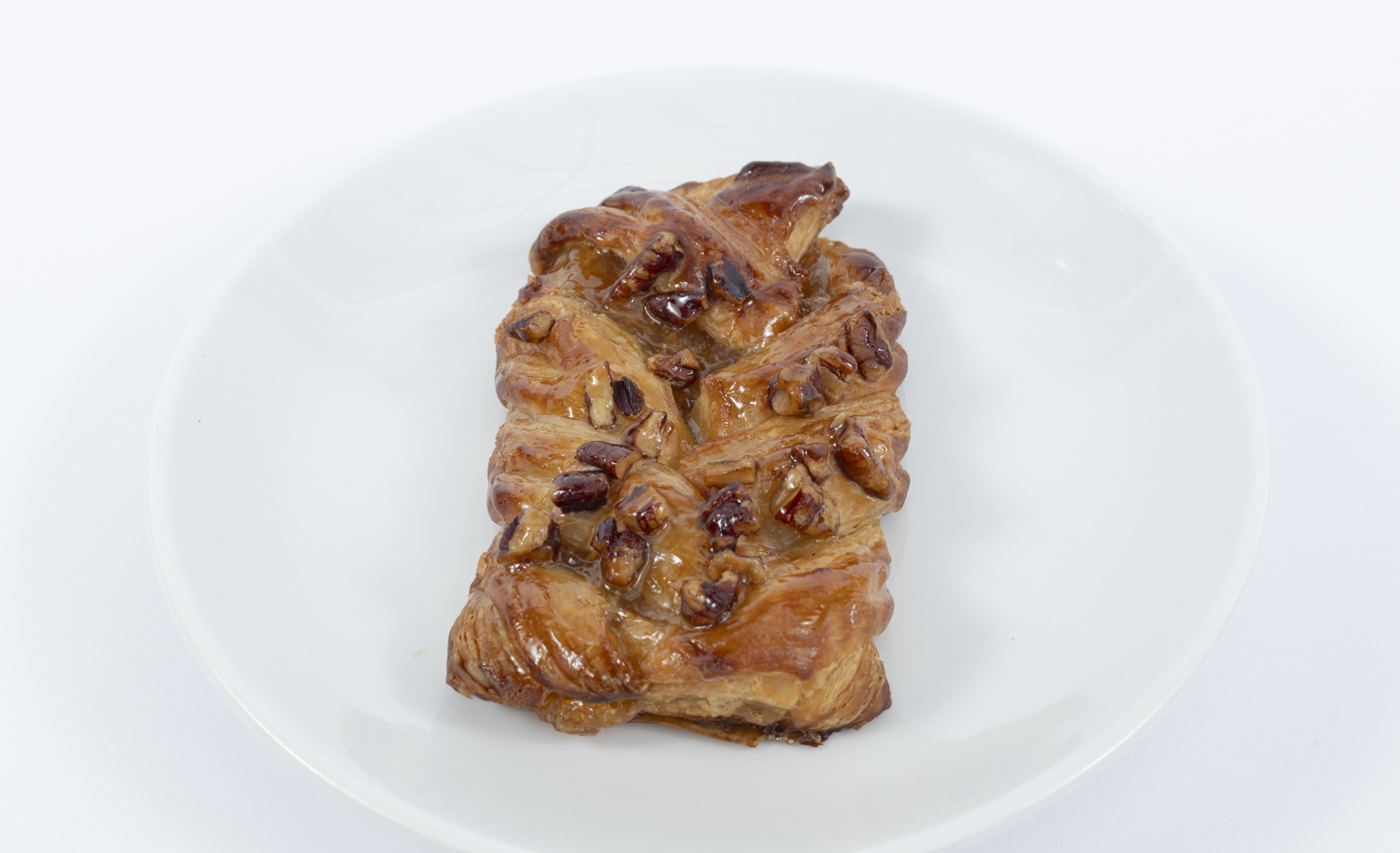 Repostería dulce hecha de pasta de hojaldre, rellena de deliciosa miel de maple y cubierta con crujientes trozos de pecanas.