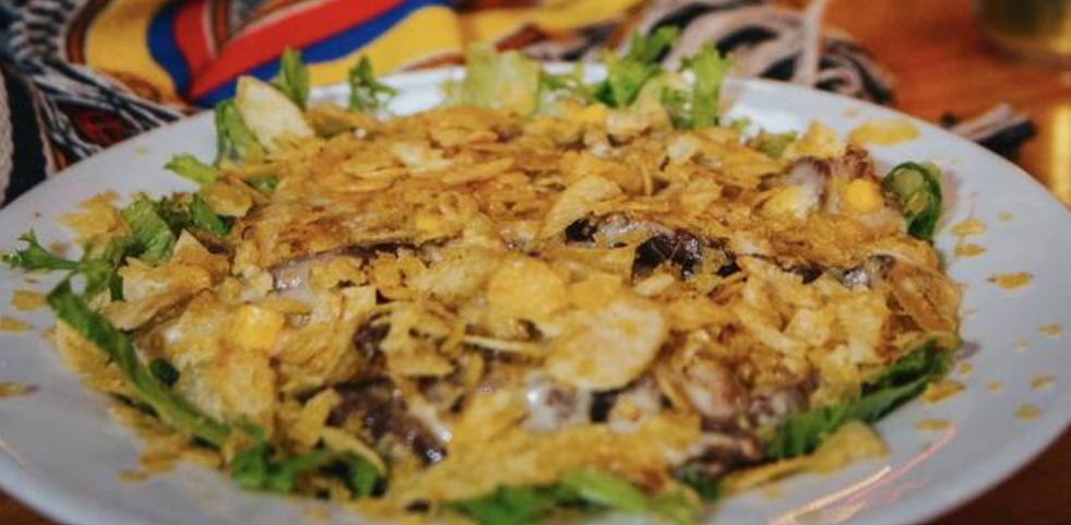 Incluye carne mechada, pollo, queso y tocineta.