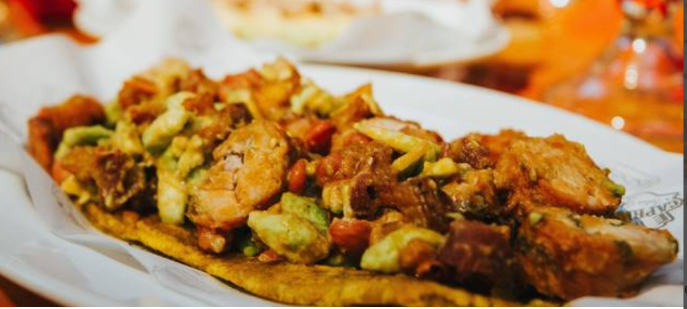 Chicharrón, huevo, guacamole y maduro.
