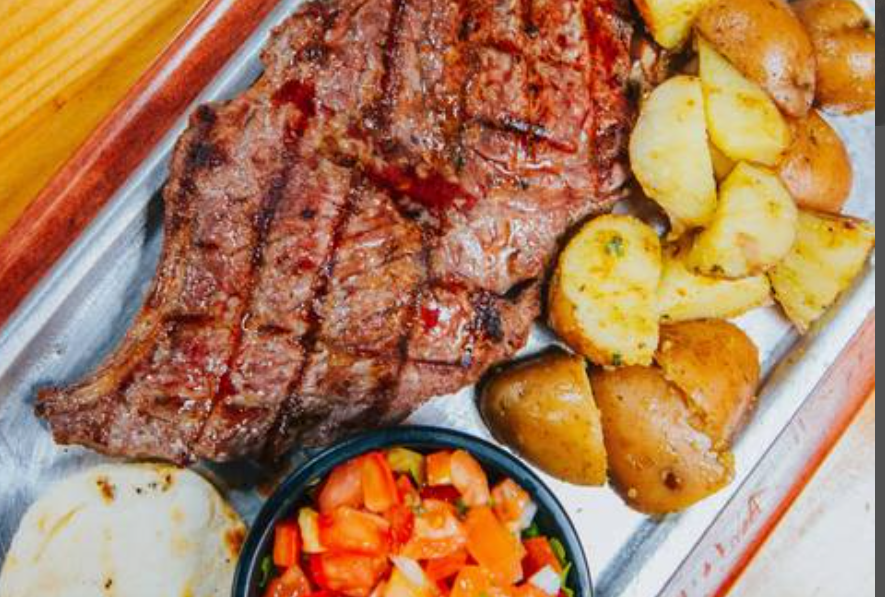 Corte de carne de res sin hueso. Papas al gusto, arepa y ensalada al gusto.