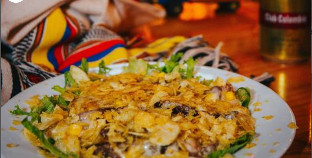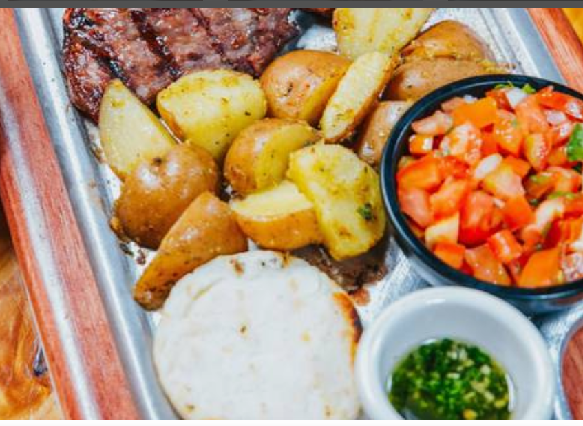 Picada (Surtido con Arepa) de Chócolo, Chicharrón de Costilla, Porcheta, Arepa Frita, Deditos de queso, Papa Criolla, chorizo, churrasco, guacamole, chimichurri y hogao.