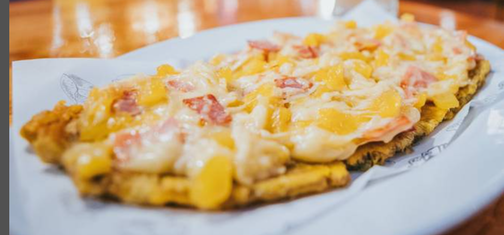 Patacón con Pollo, Queso y Tocineta