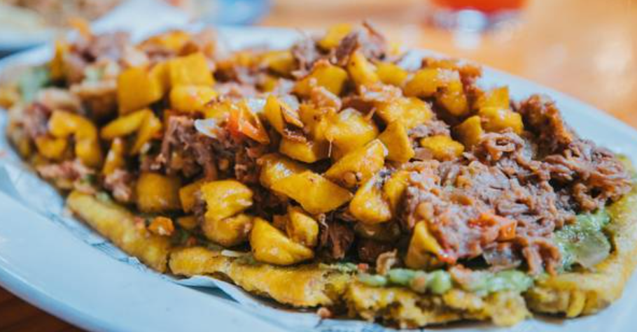 Patacón con Carne Mechada y Pollo