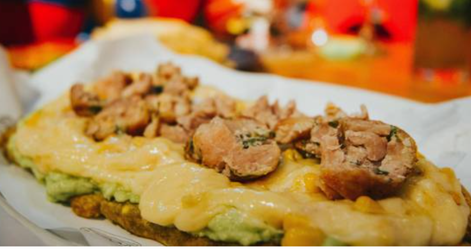 Patacón con Pollo, Queso y Maíz