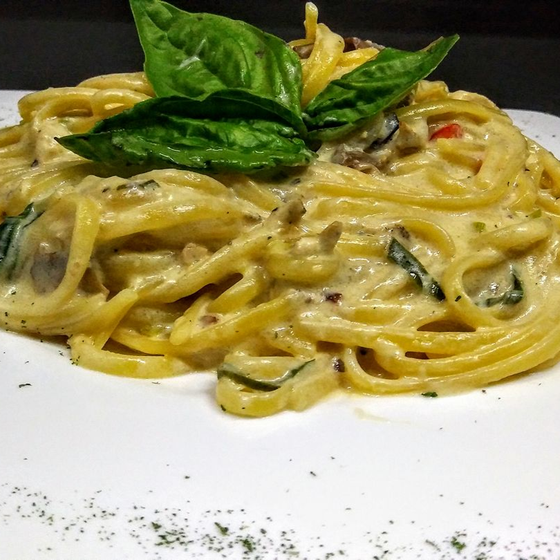 Espaguetti con Pollo Salsa Tomate Plato