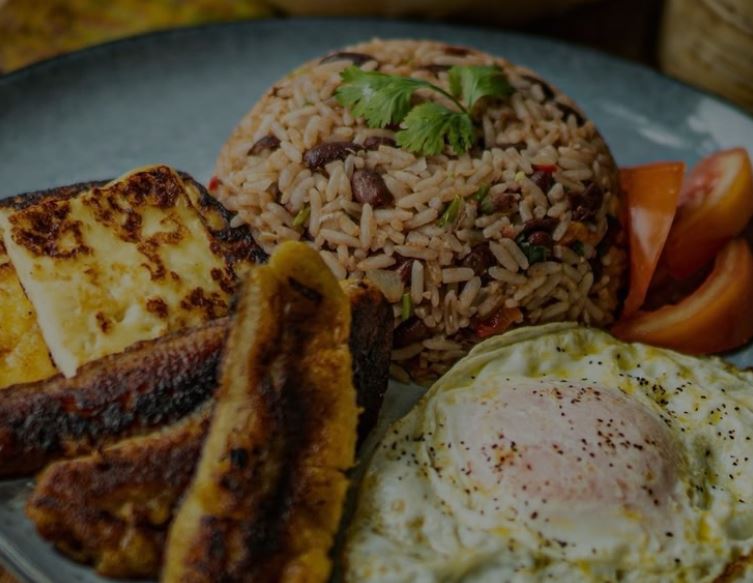 Delicioso gallo pinto, y dos acompañamientos a escoger.