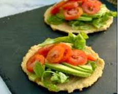 Delicioso tofu, harina garbanzos, albahaca, tomate, orégano, aguacate y tortilla.