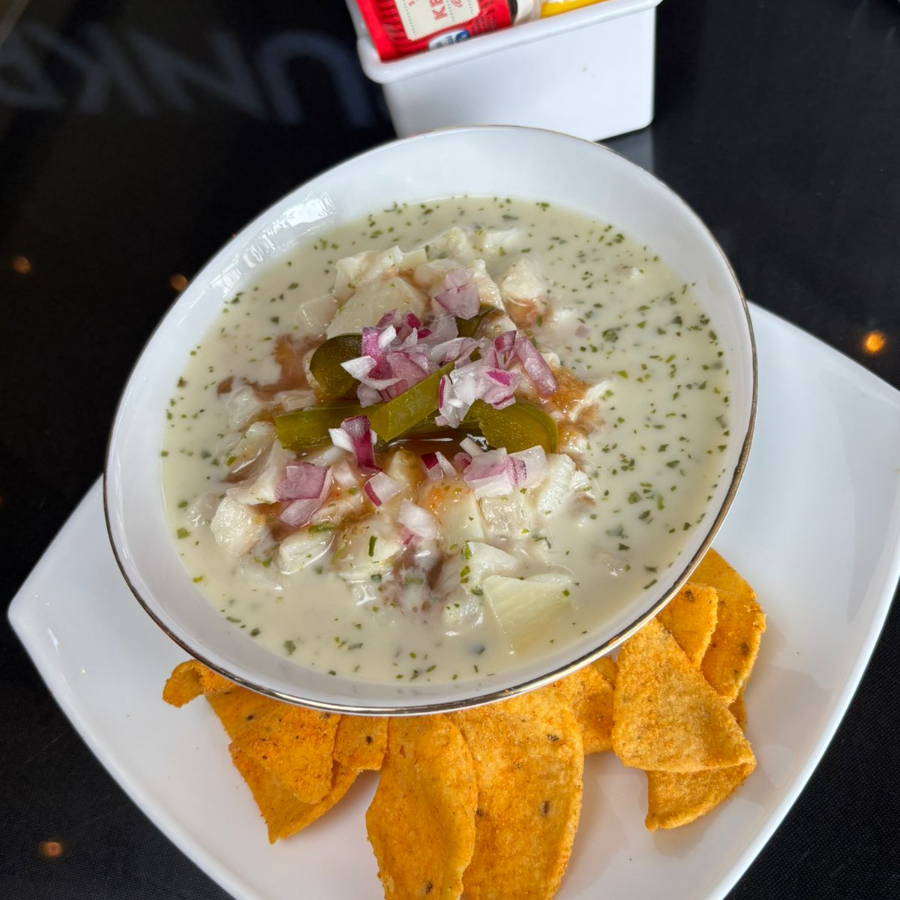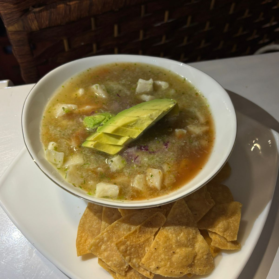 Pescado fresco, chile jalapeño, aguacate, cebolla morada, todo en una salsa especial hecha a base de tomate, especias y chile jalapeño.