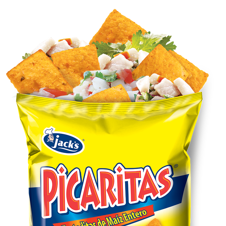 Combinación de ceviche servido directamente en un paquete de snacks (picaritas).