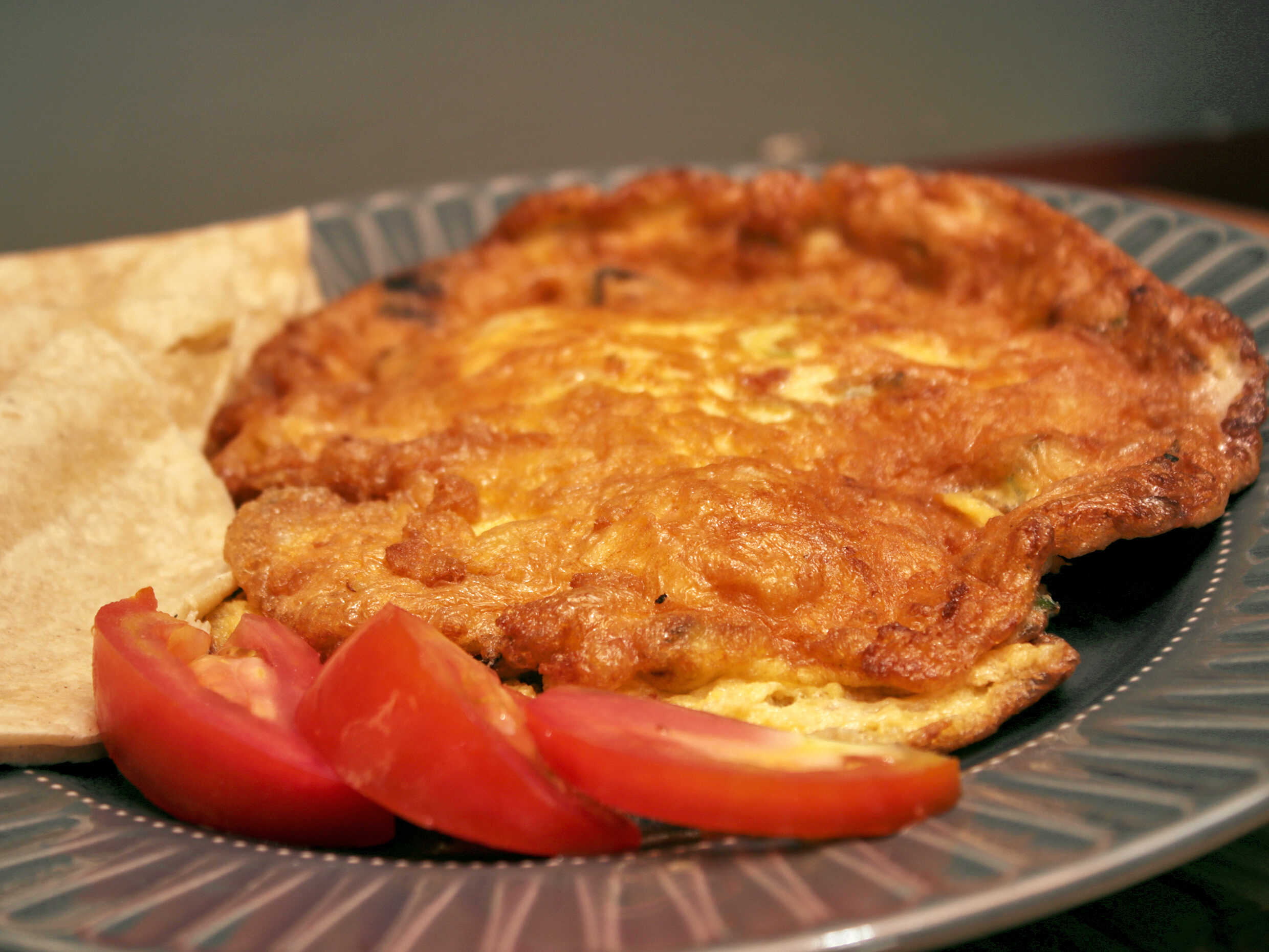 Tortilla de harina rellena de chicharrón de cerdo, acompañado de ensalada verde (lechuga, tomate, zanahoria y repollo).