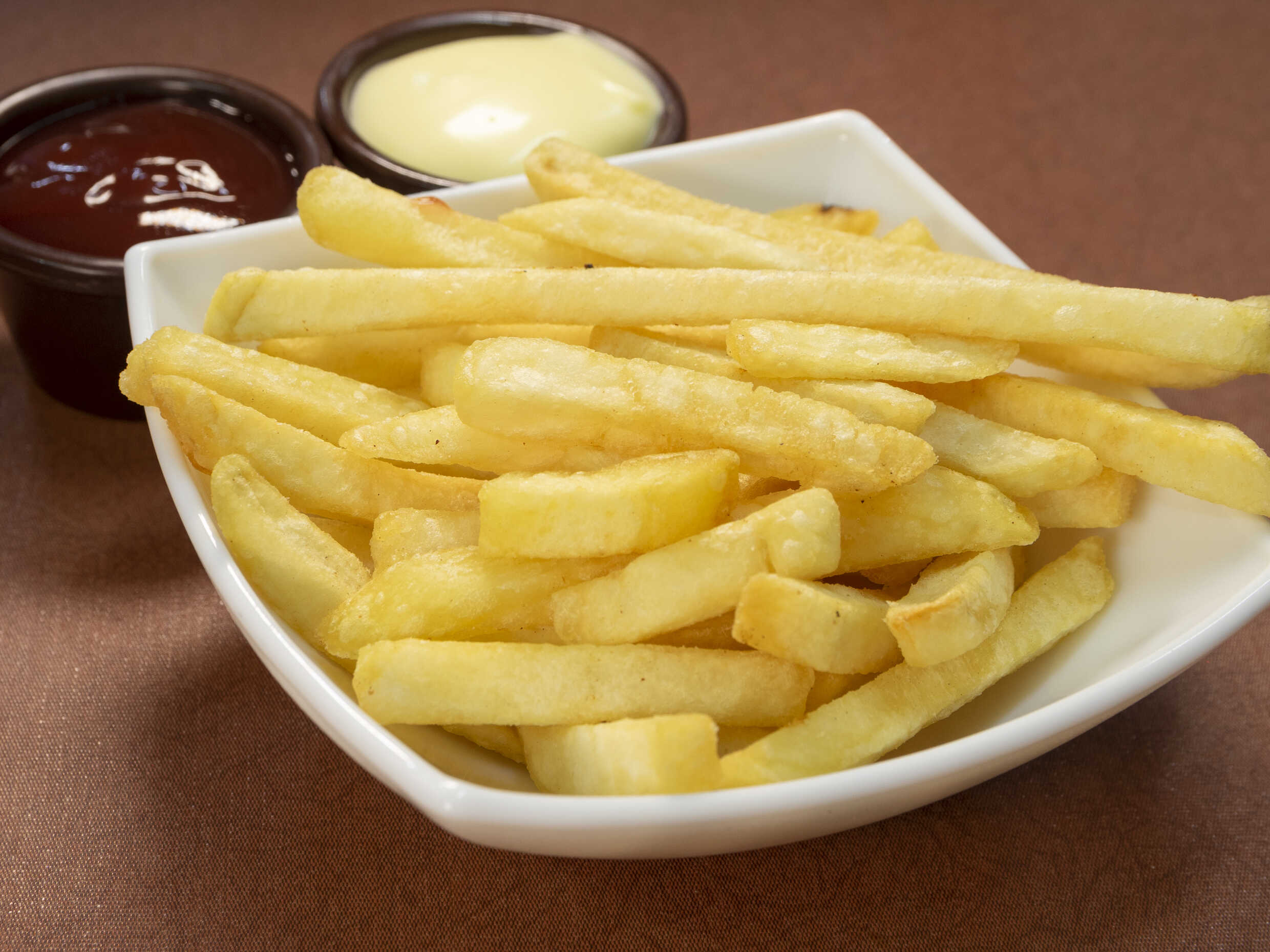 Deliciosos deditos de pescado, acompañados de papas fritas, ensalada verde y nuestra salsa tártara.