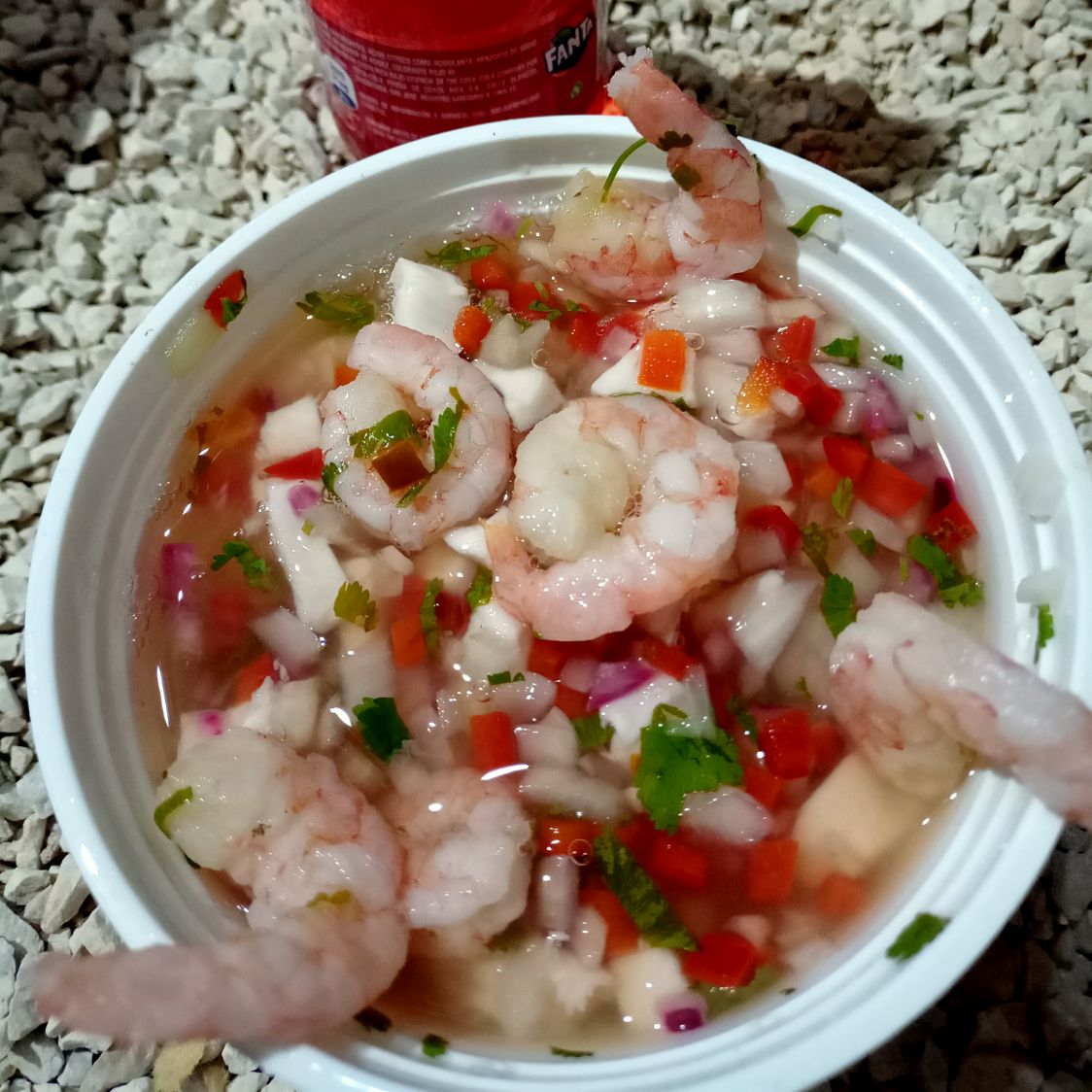 Camaranos culticados en la tradicional receta Costarricense ceviche especial