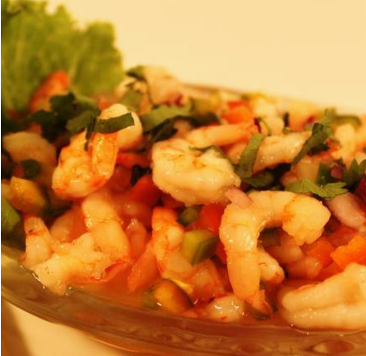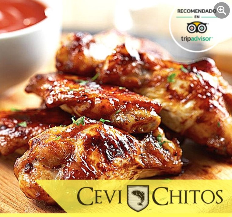 Pechuga de pollo en trocitos, marinados y adobados en salsa barbacoa, una receta original de cevichitos.