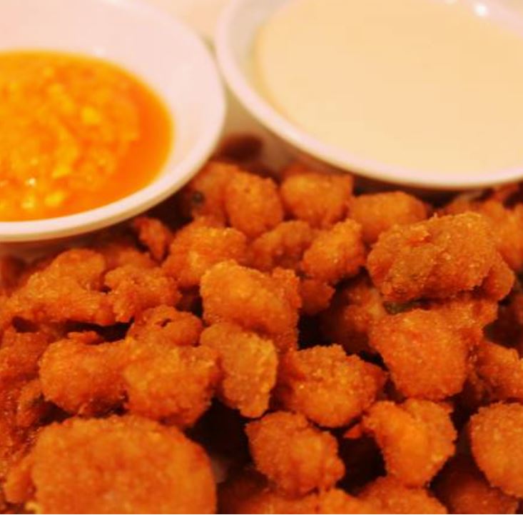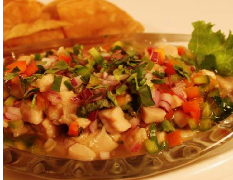 Derivación de nuestro ceviche peruano, filete de lenguado en trozos, empanizado caliente, crujiente, frío y sabor a limón.