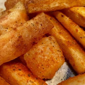 Preparación donde la carne, especialmente la de cerdo, se corta en trozos y se fríe o cocina hasta que queda crujiente.