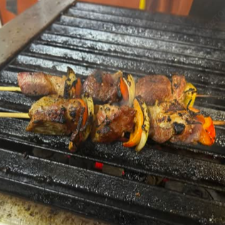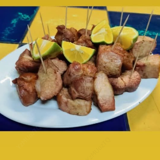 400 gramos de chicharrón de carne de cerdo, ensalada (repollo, tomate y limón), 3 tortillas (yuca frita o papas a la francesa).