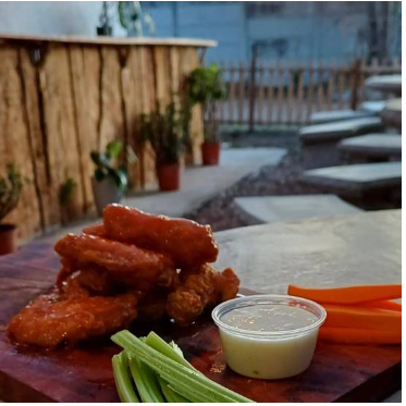 8 alitas de pollo con un empanizado especial leve y adobadas un día anterior. Acompañadas de apio, zanahoria y salsa ranch casera.