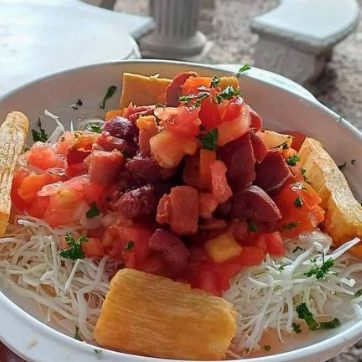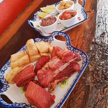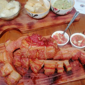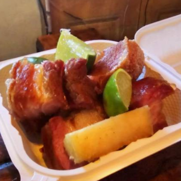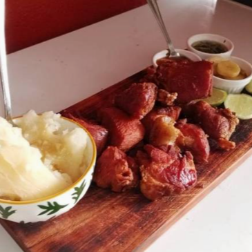Trae chicharrón de ambos cortes, yuca con mojo, repollo y pico de gallo. Una receta perfecta.