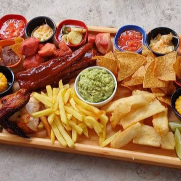 Nachos con papas, cargados de sabor. Podes elegirlos mixtos o de una sola carne: pollo, cerdo o res.