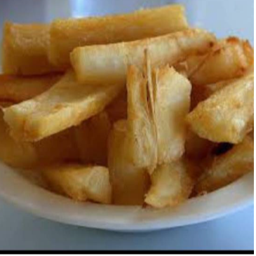 250 gramos de yuca hervida con ingredientes secretos y después frita.
