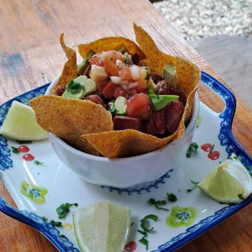 Guacamole fresco y cremoso, preparado con aguacates seleccionados, tomate, cebolla, culantro y un toque de limón.