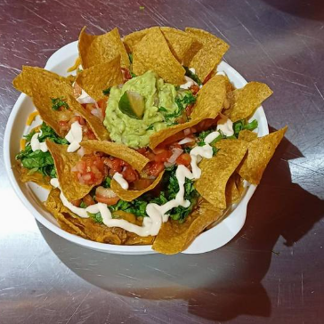 Preparados con frijoles tiernos estilo chile americano, queso mozzarella derretido, lechuga fresca, pico de gallo, natilla y chips de tortilla. Carne a elección.