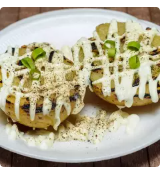 Deliciosa papa asada acompañada de natilla, sal y pimienta.