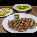 Delicioso y suave Lomito importado de res 100% a la parrilla, incluye 2 acompañamientos y chimichurri argentino aparte.