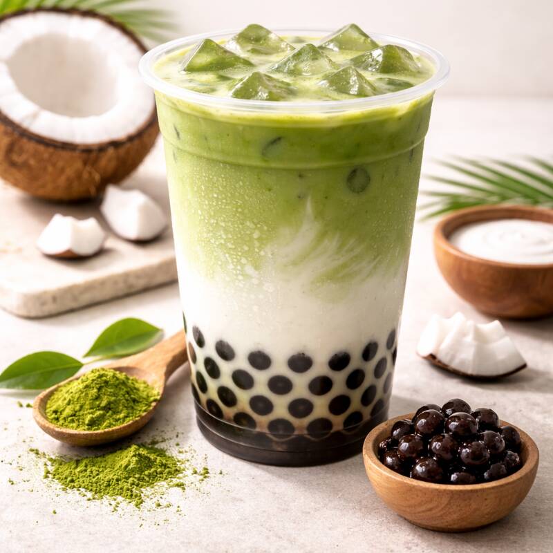 Una opción refrescante y tropical. Este Bubble Té está elaborado con una deliciosa leche de coco que tiene un dulzor natural y ligero. Es suave, aromático y combina perfectamente con nuestras perlas de tapioca. Ideal para quienes buscan un sabor exótico y refrescante.