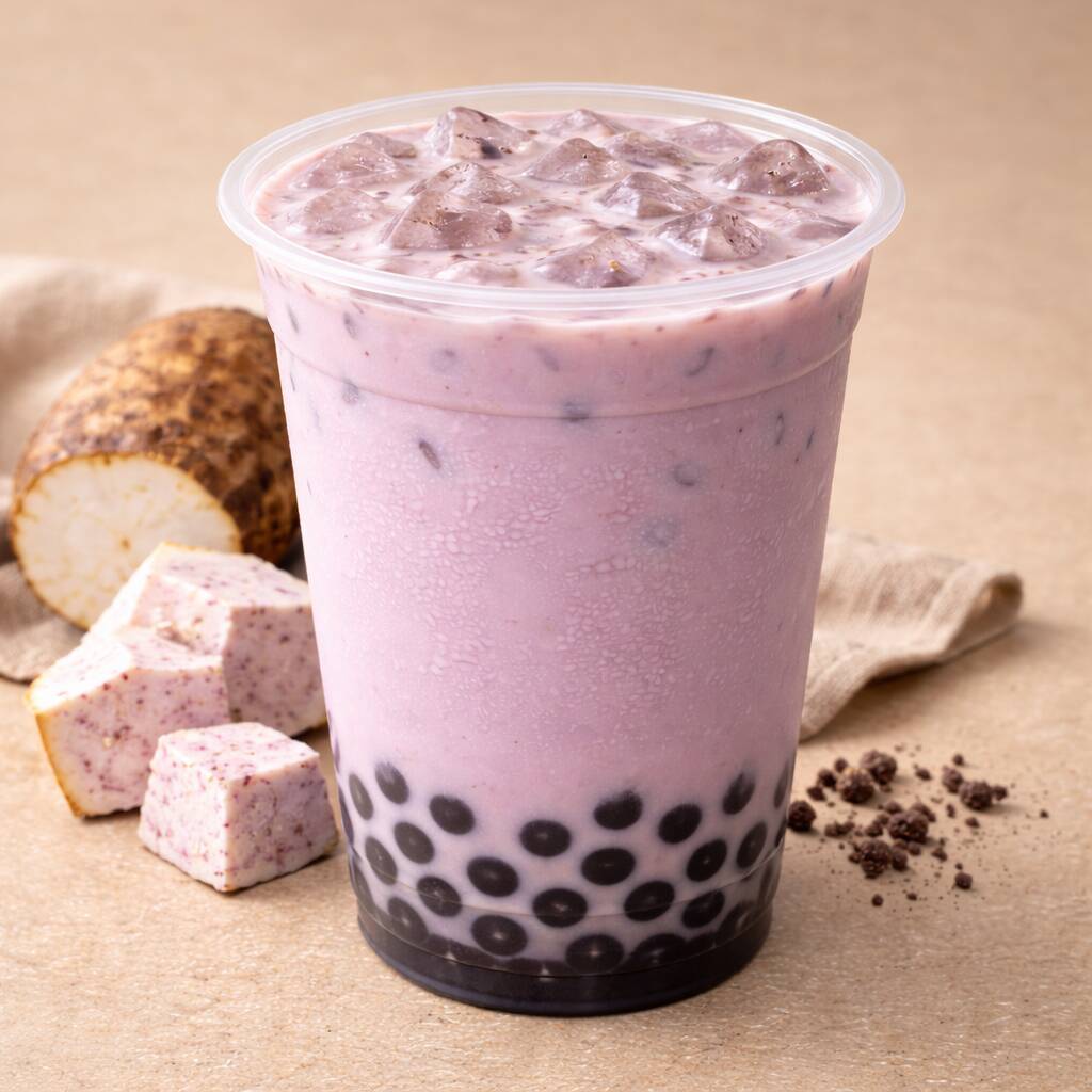 Bebida fría cremosa con el sabor único del Taro. Se destaca por su color morado suave y un perfil de sabor dulce, denso y ligeramente tostado, parecido al de la galleta o frutos secos. Incluye perlas de tapioca.