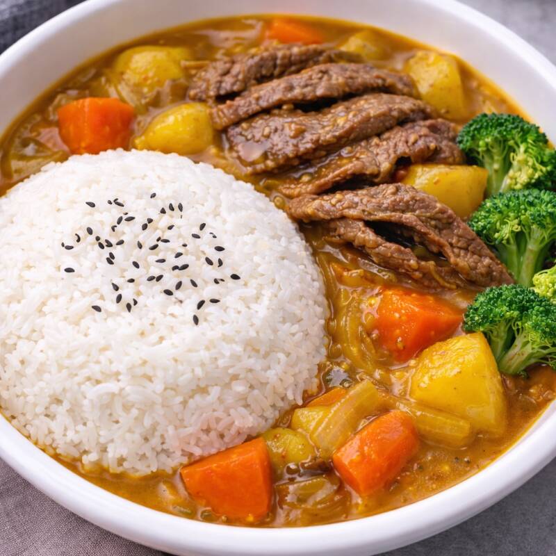 Arroz Blanco con Res en Salsa Curry Japones
